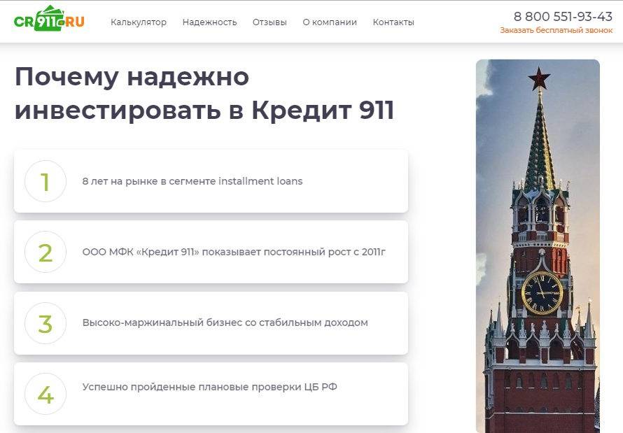 Стоит особое внимание уделить надежности компании. Так, МФК CR911 обязательно заключает с инвесторами договор, гарантирует возврат средств и процентные начисления