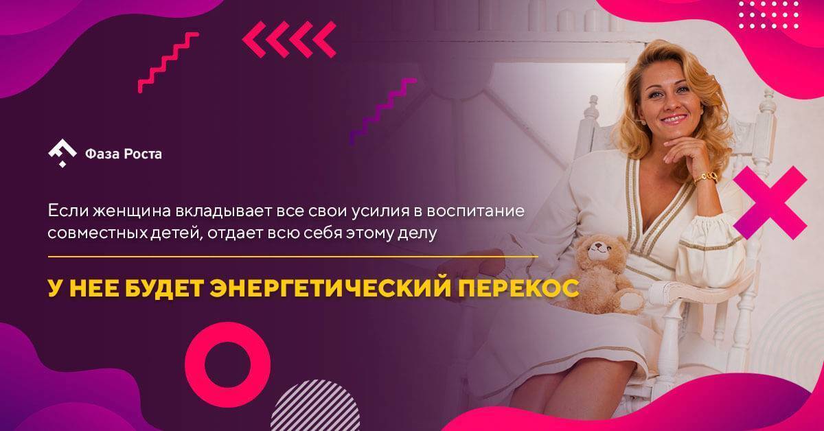 - Если женщина вкладывает все свои усилия в воспитание совместных детей, отдает всю себя этому делу, у нее будет энергетический перекос.
