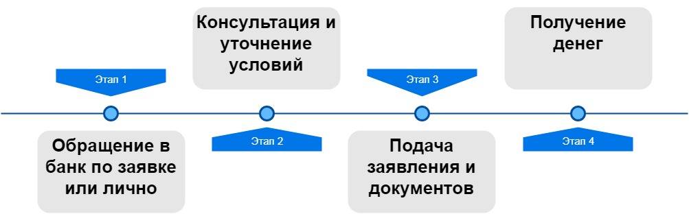 Во втором и третьем пункте заемщик подробно знакомится с условиями займа, которые предлагает банк. Менеджер выдает шаблонную анкету, где обозначаются личные данные человека и финансовые сведения о нем.