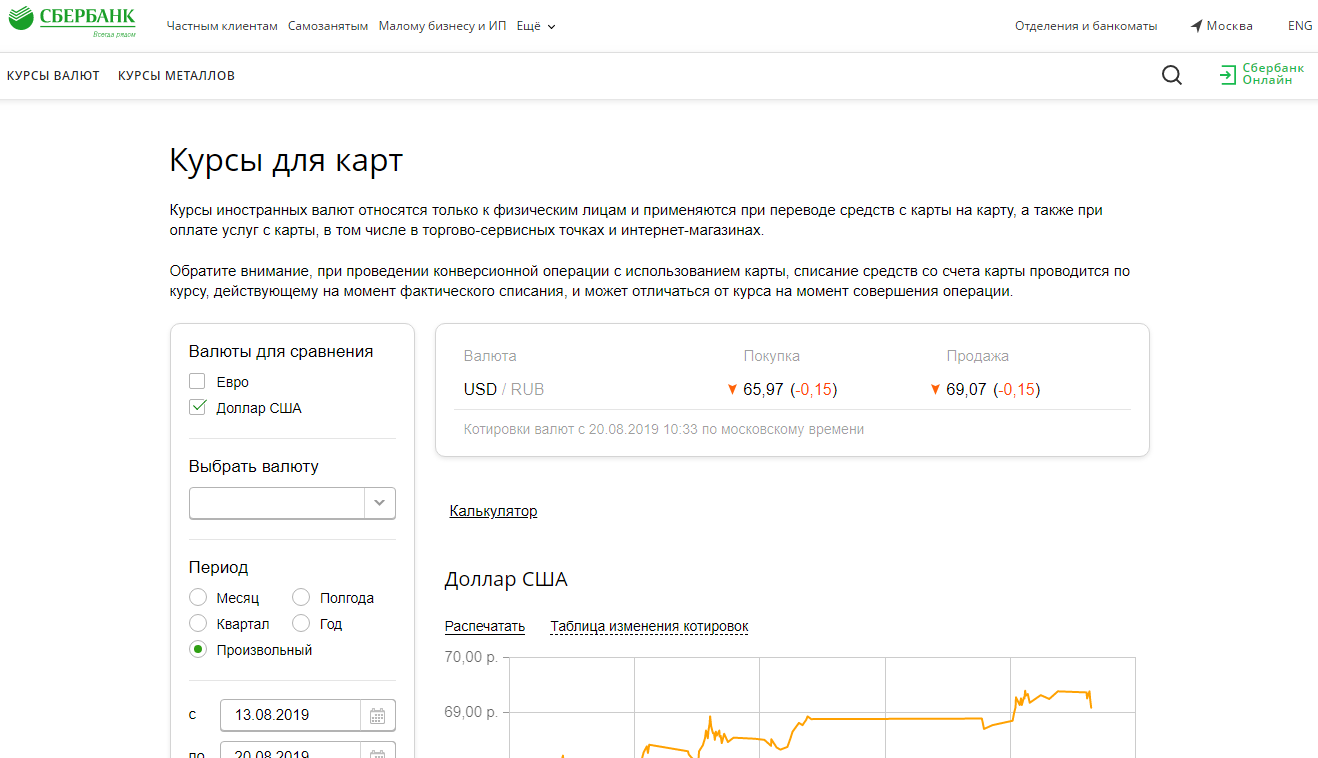 Такой вариант пополнения подходит абсолютно для любых карт – долларовых, мультивалютных или рублевых. Естественно, при переводе средств из одной валюту в другую используется официальный курс, установленный Сбербанком. Он достаточно часто корректируется и размещается на сайте организации.
