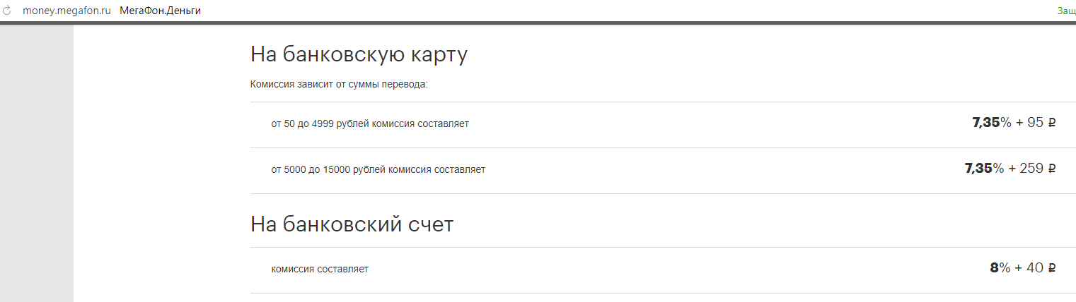 Тарифы на перевод денег с мобильного телефона Мегафон и Билайн