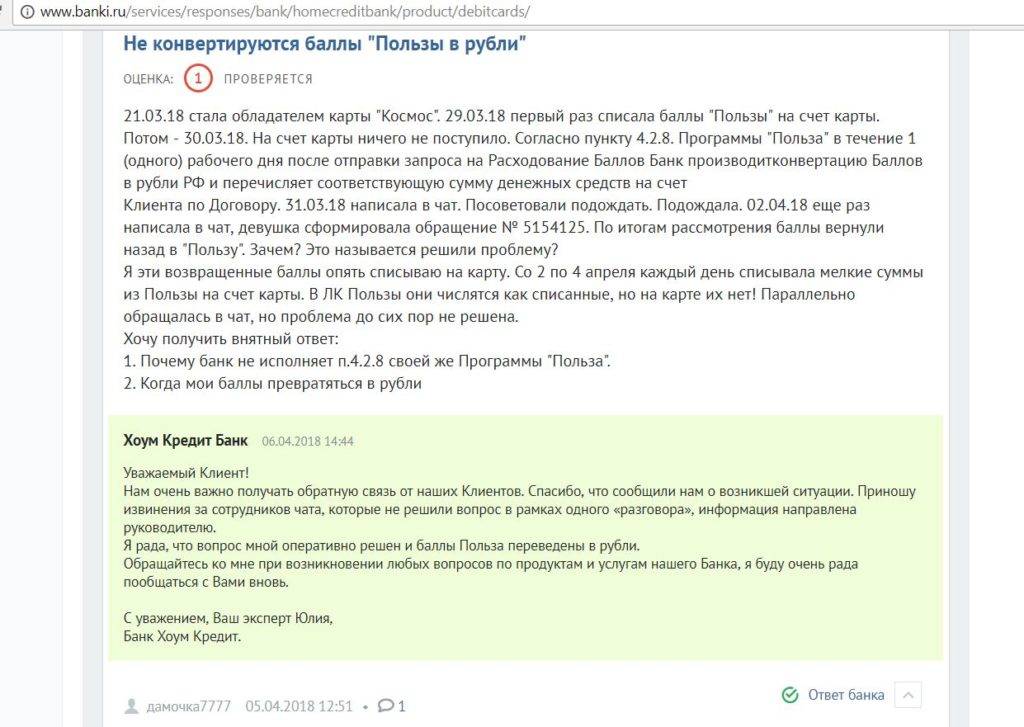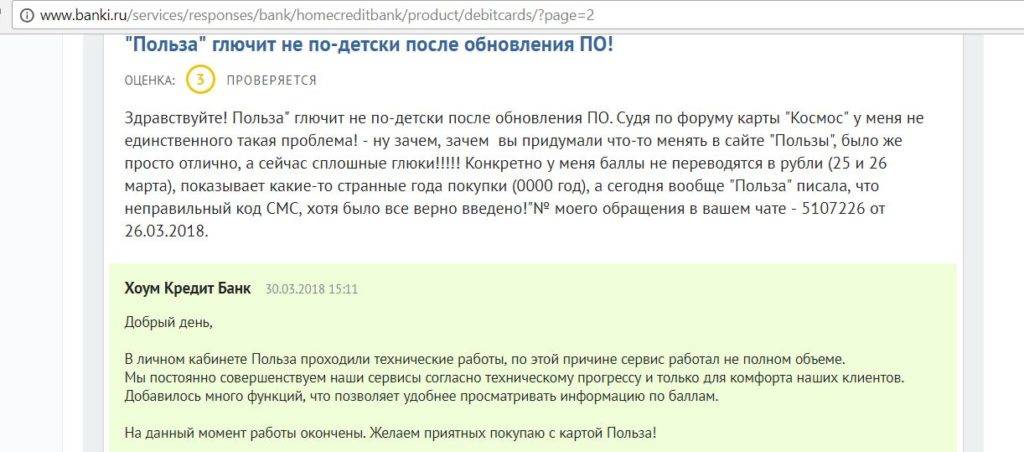 Карта Польза от Хоум Кредит. Недостатки