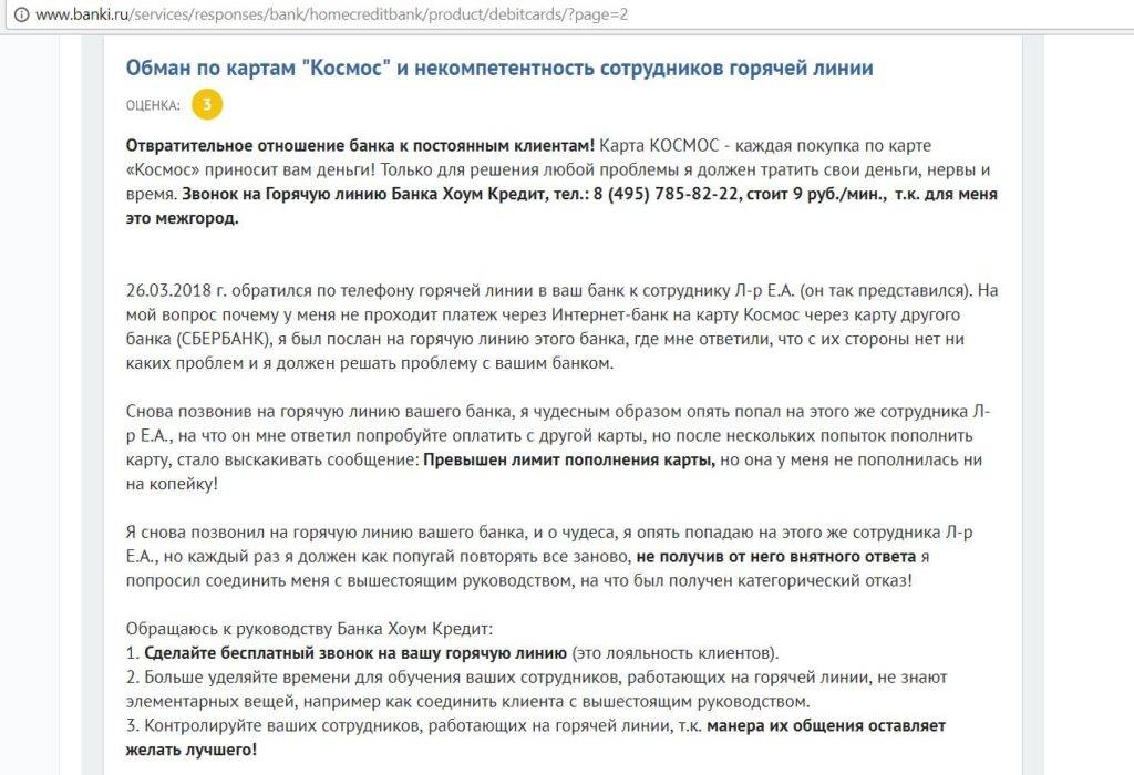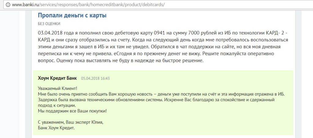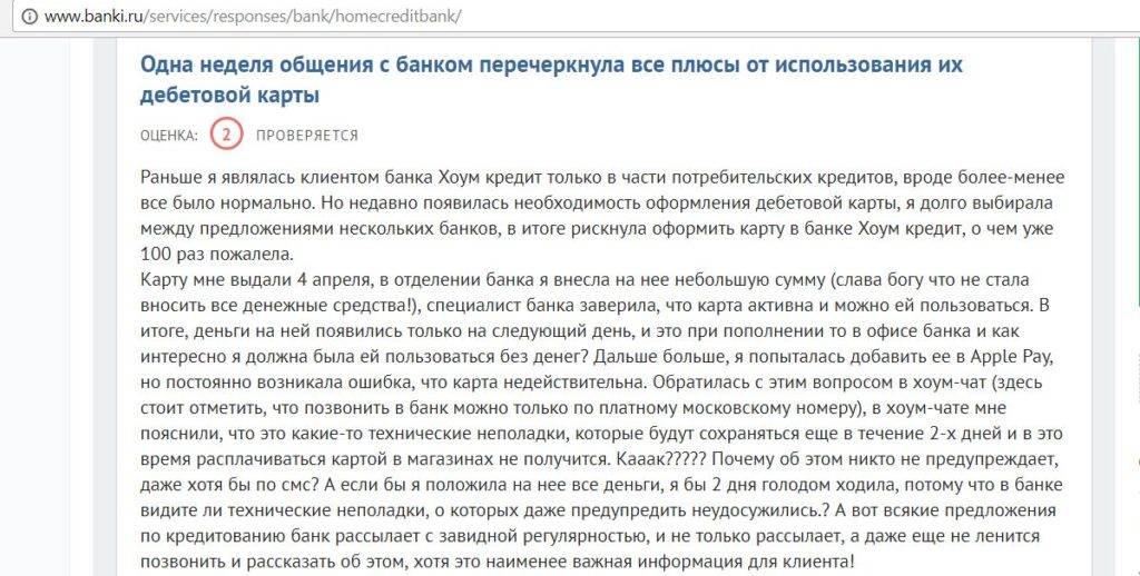 Стоит отметить, что отзывы о блокировке счетов в «Хоум Кредит Банке» по 115-ФЗ практически не встречаются.