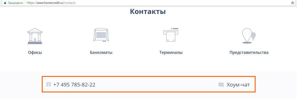«Хоум Кредит Банк» особо не афиширует, что у него есть бесплатный телефон горячей линии 8 800-700-800-6 (он указан на обратной стороне карт банка), тем более он работает только для действующих клиентов, а вот новые клиенты вынуждены ограничиться платным городским номером или онлайн-чатом: