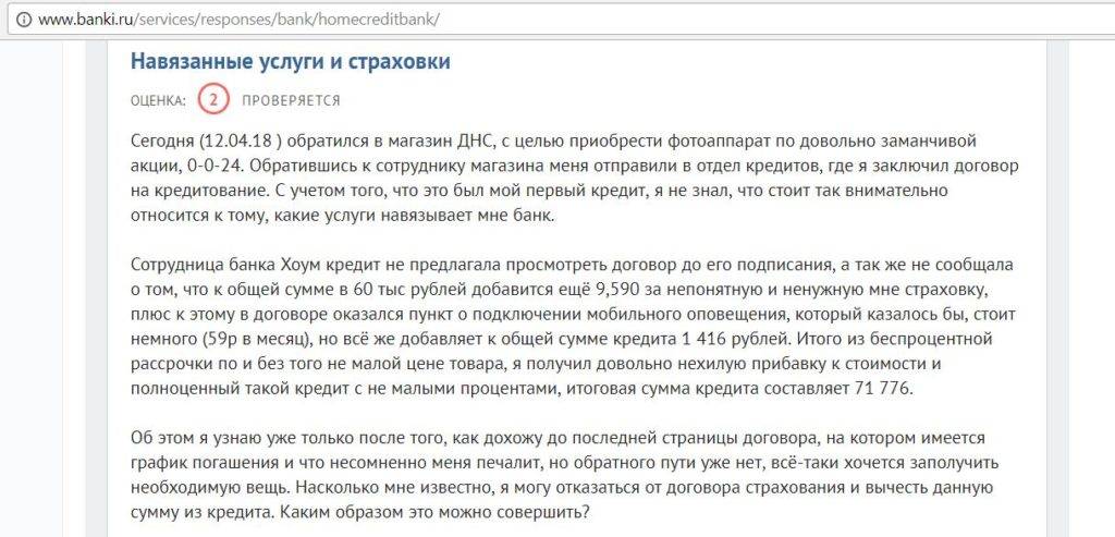 Навязывание клиенту различных платных услуг в банковской практике уже является нормой, «Хоум Кредит Банк» здесь не исключение. Правда, стоит отметить, что ненужные услуги и страховки обычно подключают при оформлении кредитных карт и потребительских кредитов: