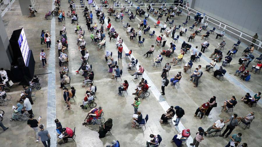 Люди, ожидающие вакцинации, в Куала-Лумпуре