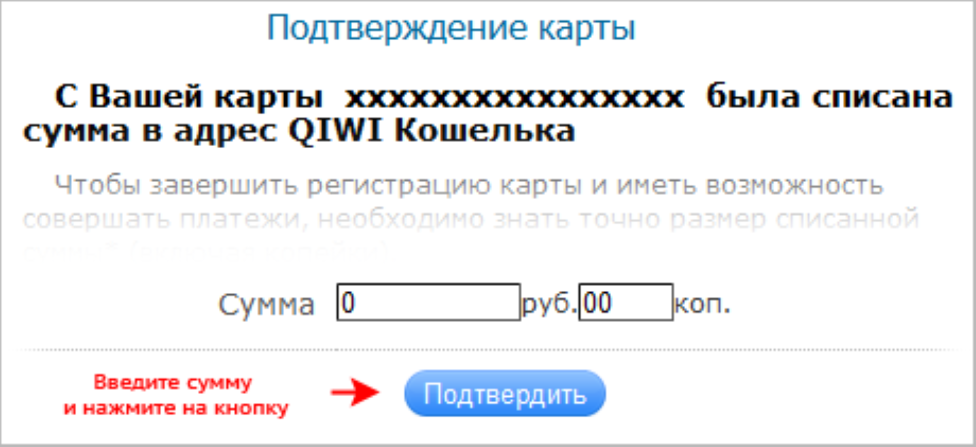 Чтобы завершить подключение карты, пришлите SMS* со значением «контрольной» суммы с точностью до копеек на номер 3115.