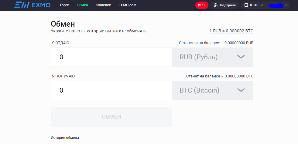 После пополнения в верхнем меню выбирайте «Быстрый обмен». Выберите обмен Рублей (сверху) на биткойны (снизу). Укажите сумму обмена в рублях или биткойнах (как удобнее). И подтвердите, нажав кнопку «Обмен». На этом покупка успешно завершена. Теперь на вашем полноценном биткойн-кошельке в крипто-бирже есть биткойны.