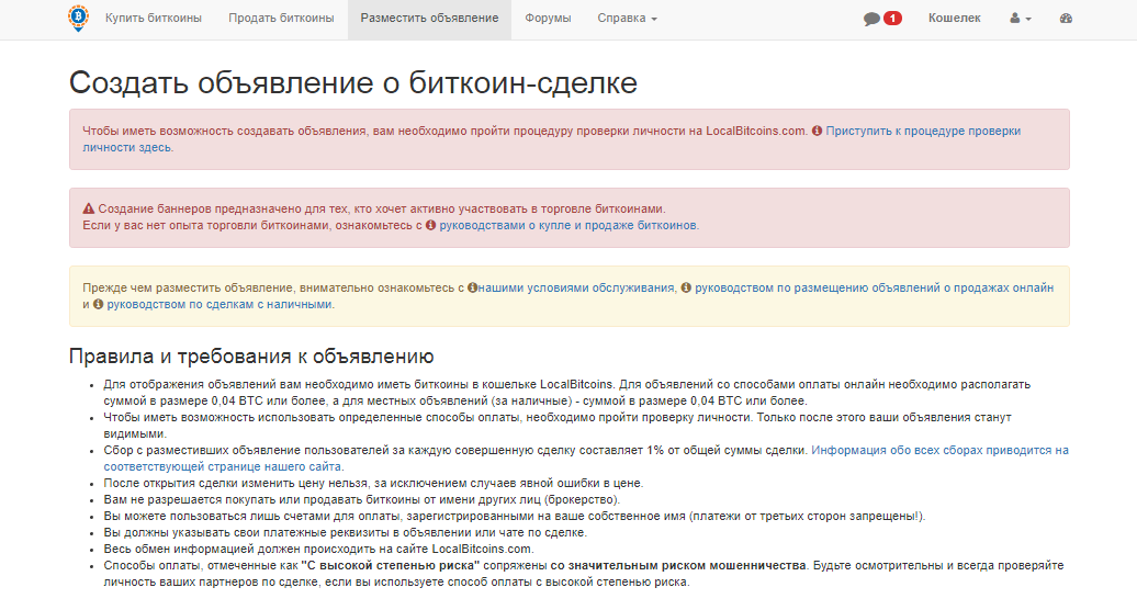 Перед размещением объявления необходимо пройти процедуру проверки личности.