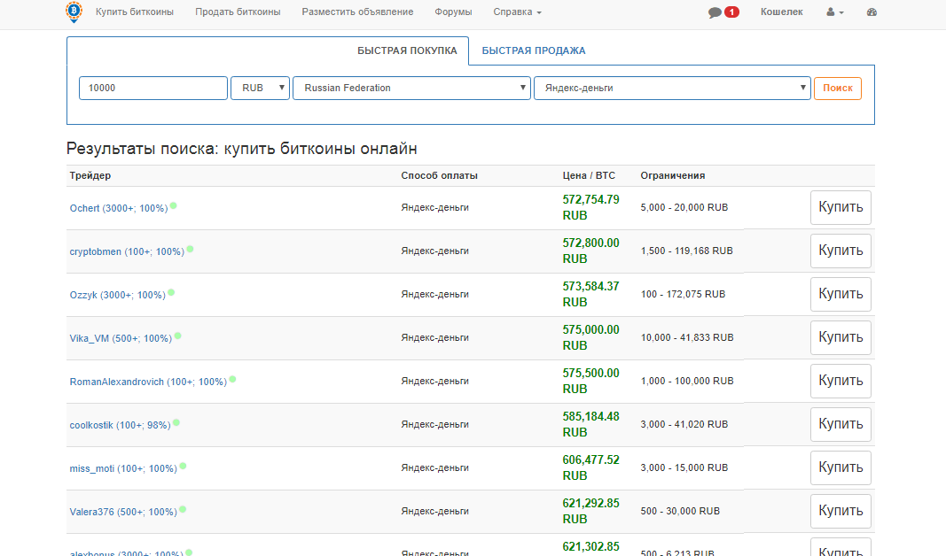 Таких сайтов, работающих с Яндексом пока не так много. Самая известная из них — LocalBitcoin. На них можно продать и купить криптовалюту и другие активы. Продавцам биткоинов площадка предоставляет кошельки и счета, на которых производится условное депонирование средств.