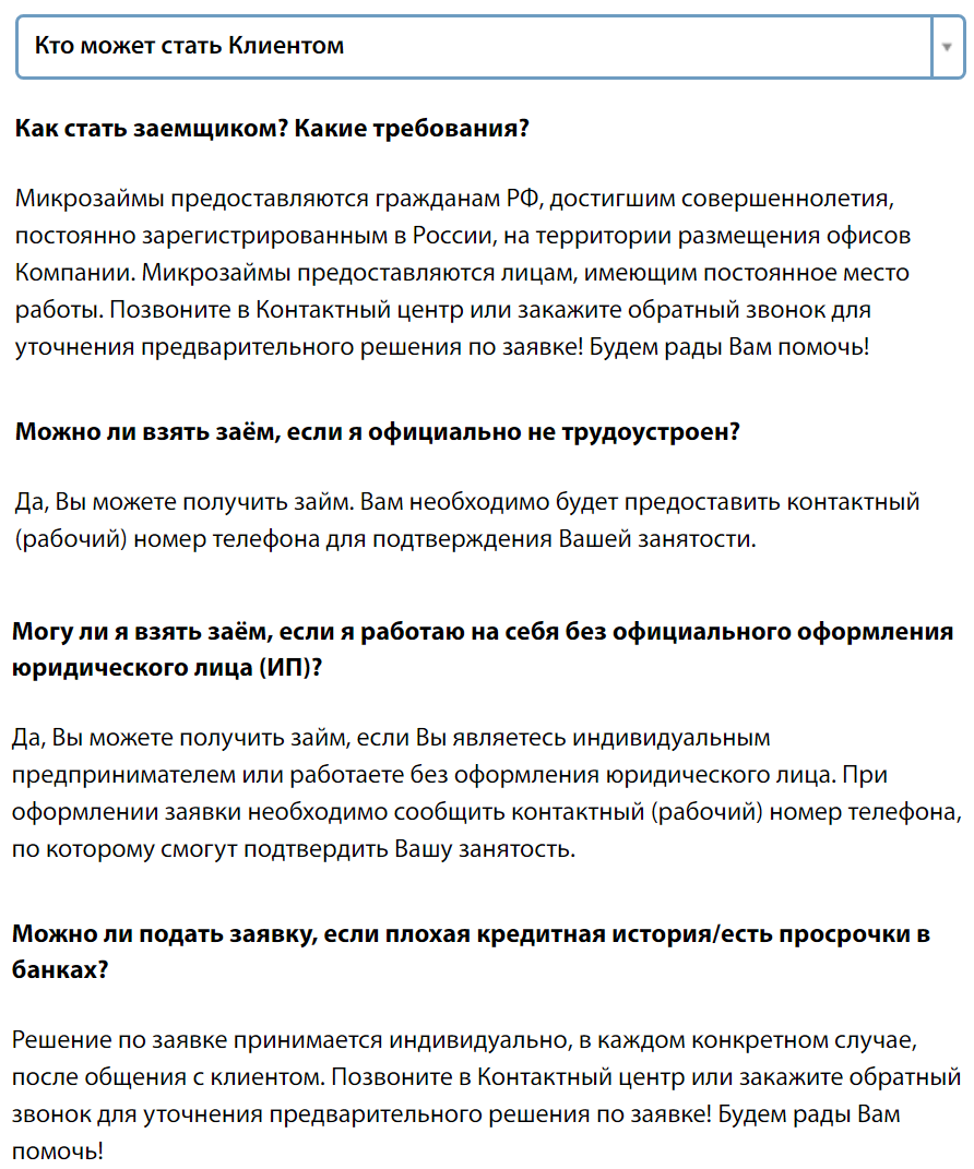 Изучив содержание раздела, заемщик избавляется от большинства вопросов.