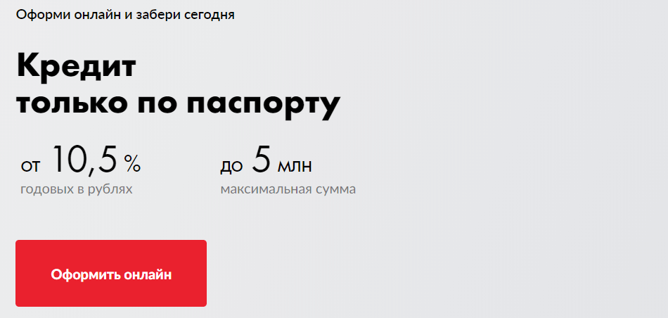 Необходимо обратиться в ближайшее отделение банка с паспортом или перейти в раздел «Кредиты» в онлайн-банке и кликнуть на интересующий займ.