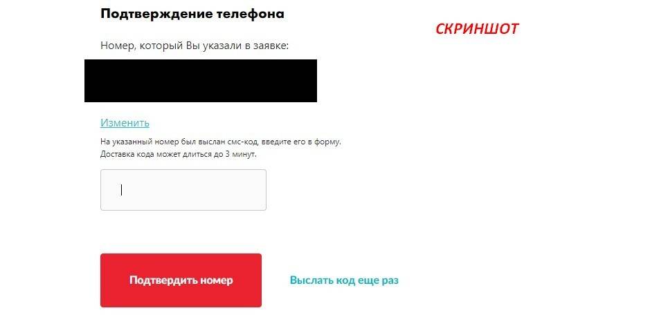 3. Подтвердить указанный номер телефона в соответствующем поле.