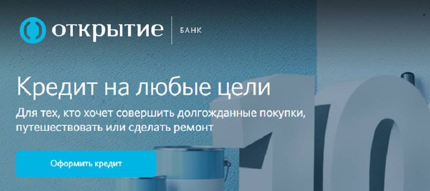 Банк «Открытие» выдает кредиты только на определенные цели, в числе которых: