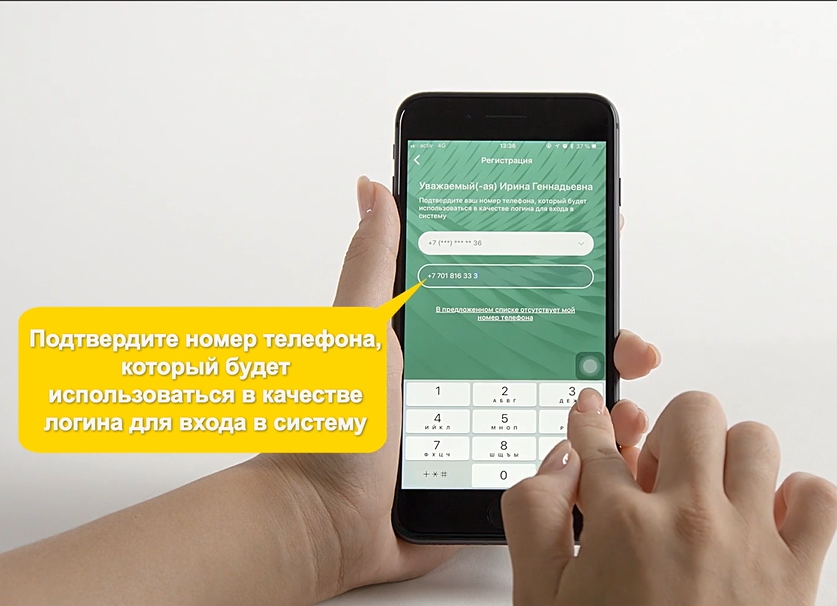 Затем подтверждаем номер телефона, введя в специальное поле код из СМС отправленный Центркредит Банком.