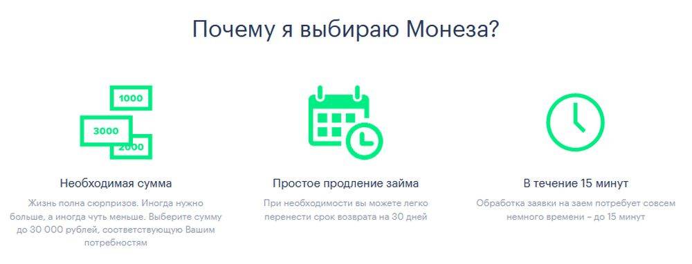 Компания предоставляет займы онлайн с 18 лет только дееспособным гражданам РФ. Что касается кредитной истории, то Монеза одобряет заявки даже тем, у кого раньше были просрочки. Главное, чтобы на момент оформления займа не было текущих просроченных долгов. Иными словами, здесь реально получить займ с плохой кредитной историей, однако кредитный лимит может быть ограничен.