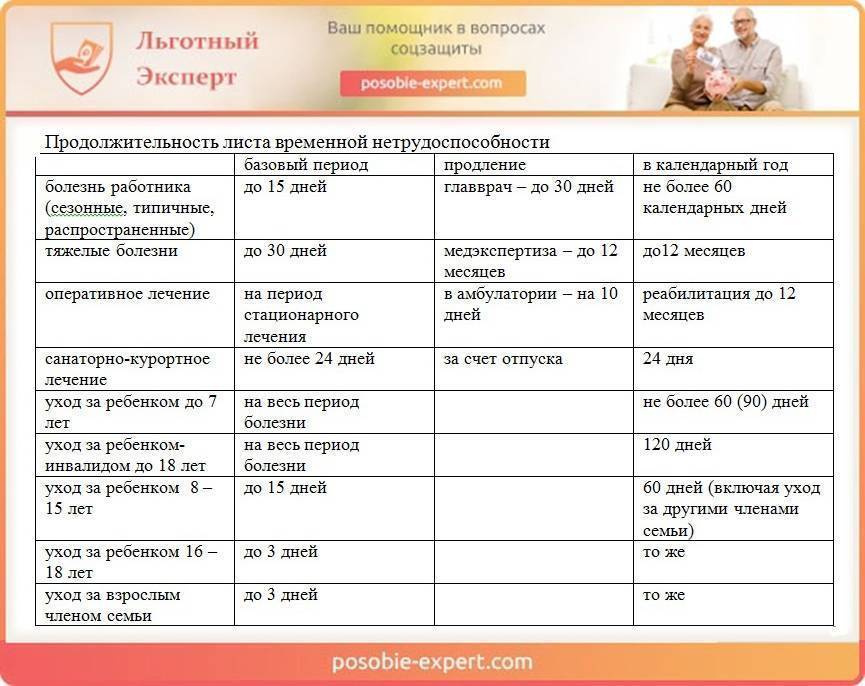 | Родственник | Максимальная продолжительность 1 больничного в днях | Число оплачиваемых дней в течение календарного года |