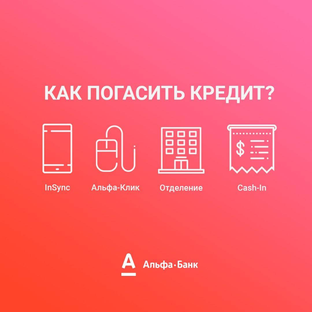 Посредством банкоматов «Альфа-Кэш» с функцией (пункт меню) «Погашение кредита».