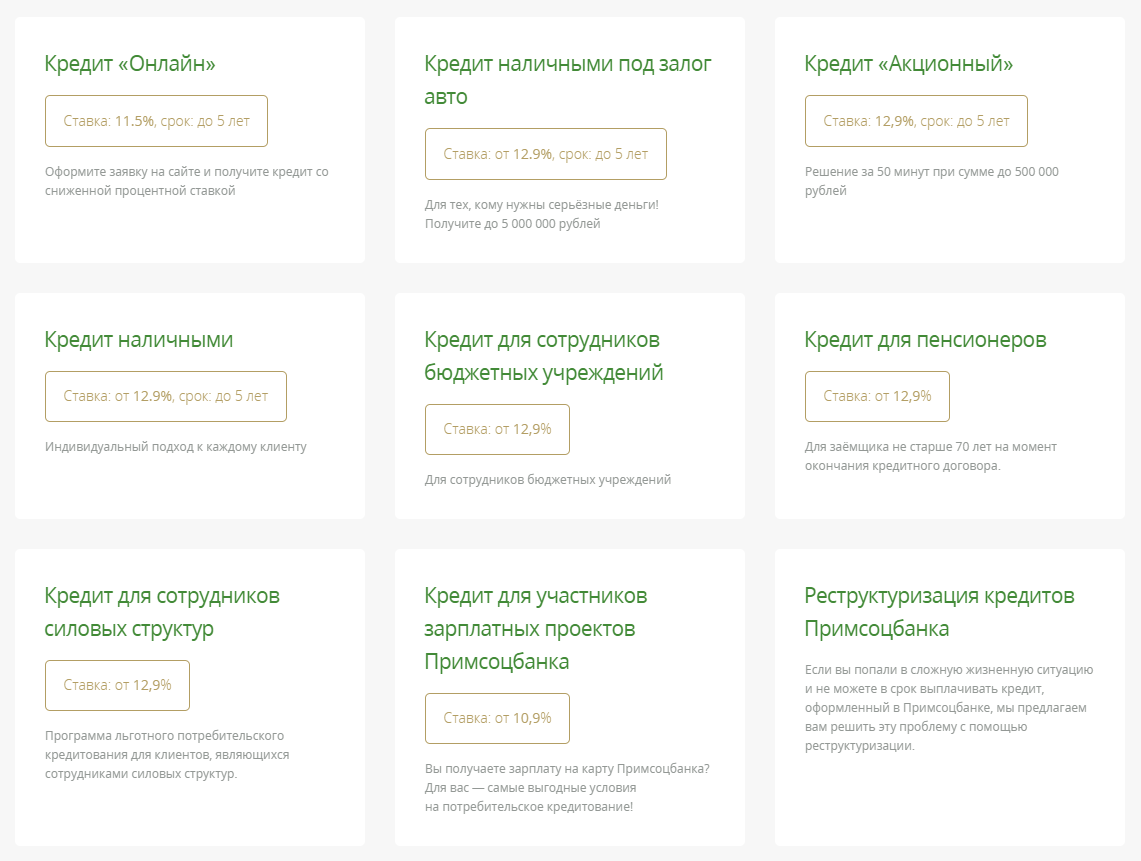 Кредиты Примсоцбанка для физических лиц