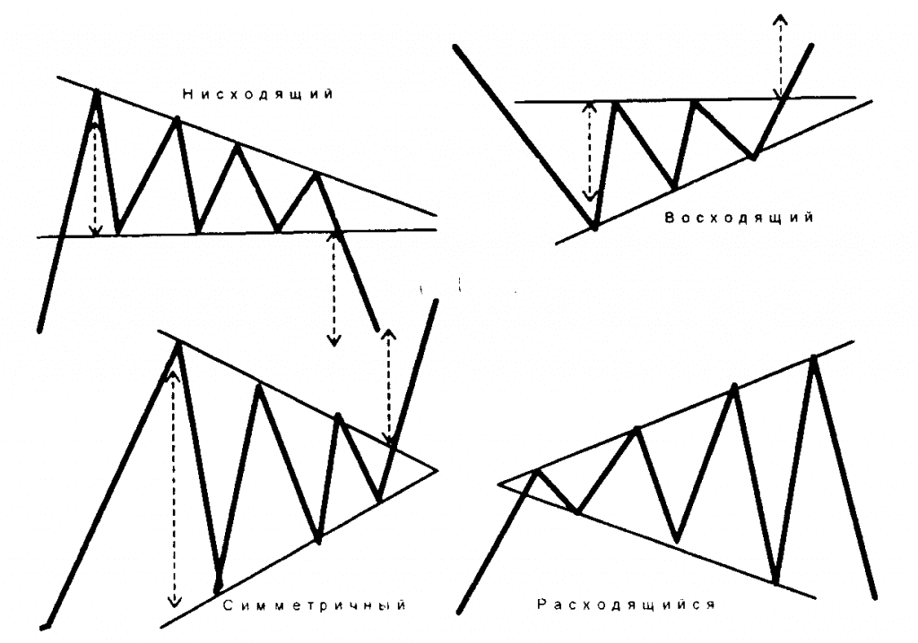 Сигнализирует либо о развороте, либо о продолжении тренда. В зависимости от того, в какую сторону окажется пробитым символ, в ту и продолжит двигаться цена. Чаще всего этот паттерн используют на таймфреймах, продолжительность которых составляет от пары недель до нескольких месяцев.