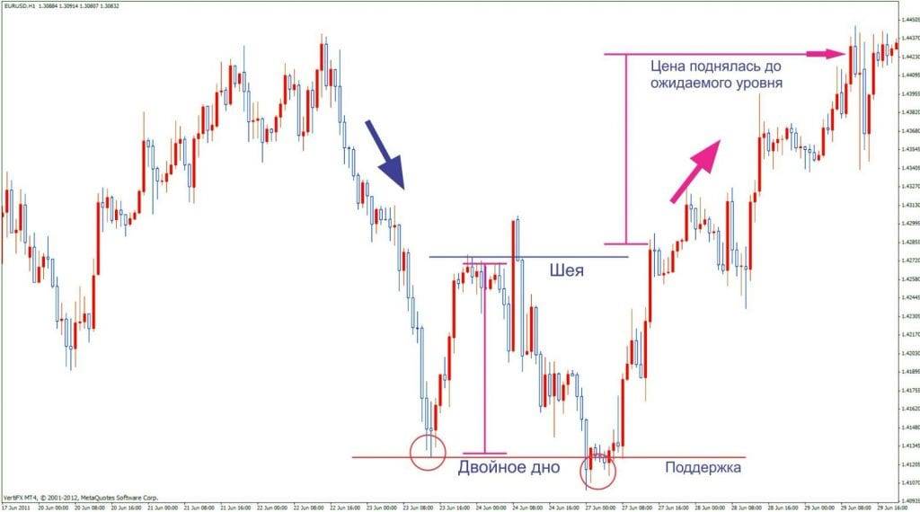 Фигуры, образованные на дне графика, характеризуются долгим сроком формирования и умеренным движением тенденции;