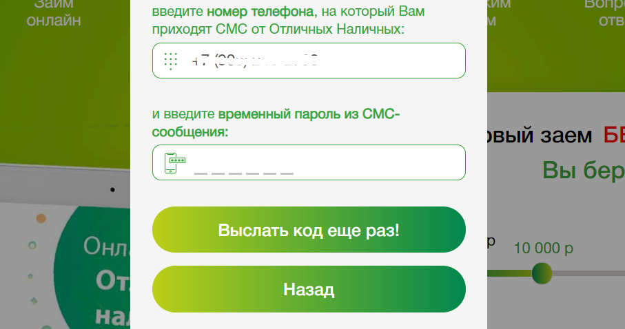Откроется форма восстановления пароля. Здесь клиент указывает свой телефон, привязанный к сервису, после система присылает на него одноразовый временный пароль, который нужно ввести в соответствующее окно. После заемщик формирует постоянный пароль: