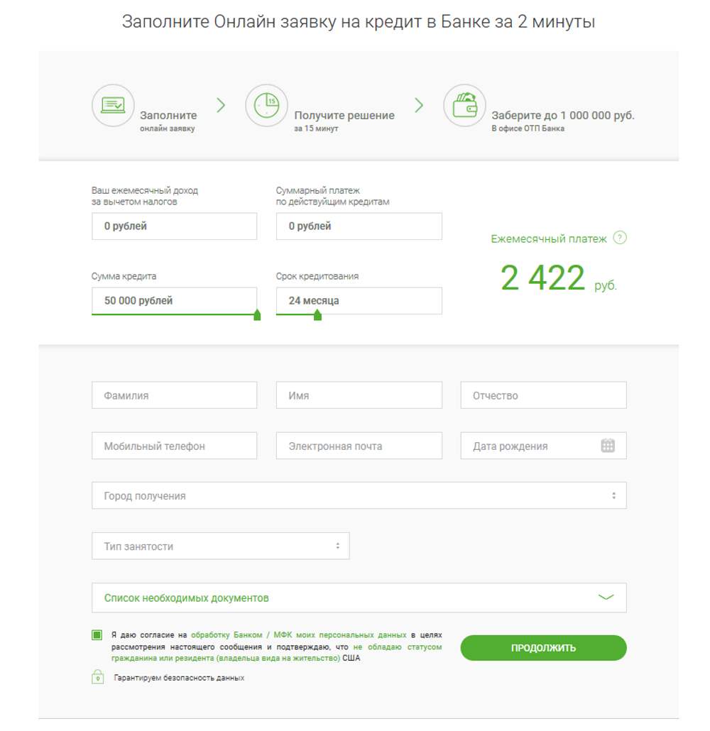 «ОТП Банк» — Онлайн Заявка на Потребительский Кредит для Физических Лиц