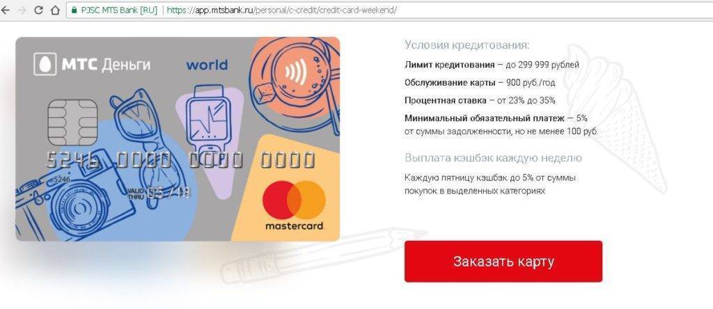 «МТС Деньги Weekend» – здесь лимит доступен идентичный Смарт-деньгам, но кэшбэк представлен в большем проценте. Поскольку существует разделение товаров на категории, в зависимости от группы будет изменяться сумма возврата средств. Грейс-период до 51 дня. За год обслуживания снимается плата в виде 900 рублей. Ставка изменяется от 21 до 30,9%.