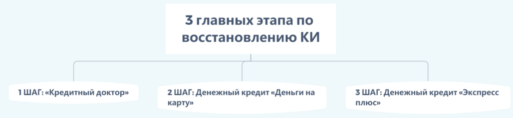 Совкомбанк предлагает пройти всего три шага к исправлению кредитной истории и вновь получить возможность, рассчитывать на выдачу кредита в любом банке. Кредитный доктор – это лишь часть пути для восстановления своей репутации. После него предполагается пройти еще два шага.