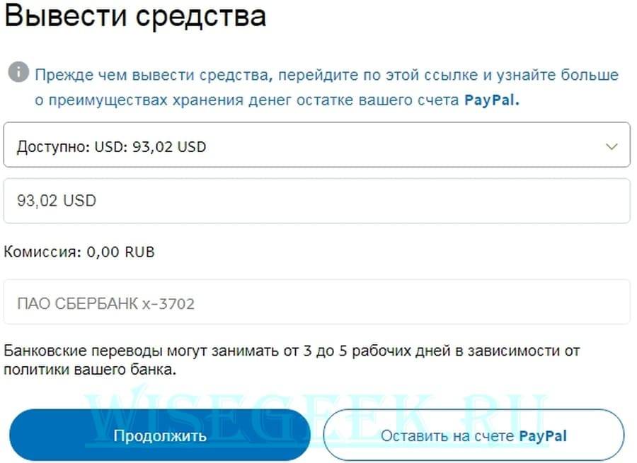 Как вывести деньги со счёта PayPal на карту СберБанка?