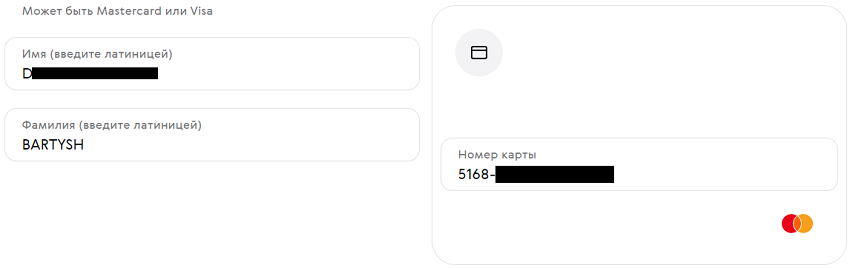 Шаг №4. Укажите номер карты, имя и фамилию получателя латиницей. Необходимо чтобы вводимые вами данные были привязаны к номеру украинской банковской карты.