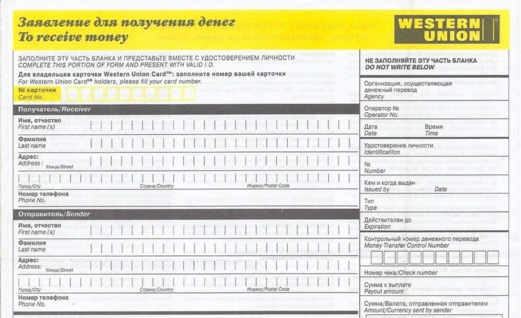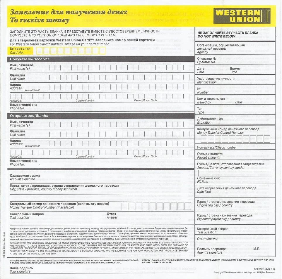 Нужно просто найти ближайший пункт обслуживания этой компании, и сообщить оператору, заполнив Заявление для отправления денег, следующие сведения:
