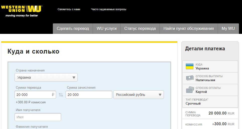 Онлайн-переводы через Вестерн Юнион на Украину привлекательны тем, что использовать для этого можно практически любой российский карточный счет. Допустимо проводить несколько операций в течение одного месяца, а отследить перемещение денег можно прямо на официальном портале сервиса.