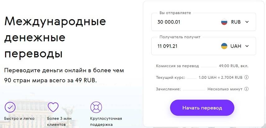 | Украина, Узбекистан, страны ближнего зарубежья | До 5 тыс. – 100 руб. Выше – 1% | От 3 до 200$ — 3$ Выше – 1% |