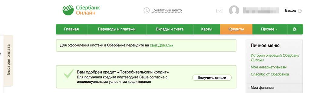 - проверить полученные СМС, возможно удастся получить персональное предложение от Сбербанка прямо сейчас (не зачитываются поступления, полученные раньше последнего месяца);