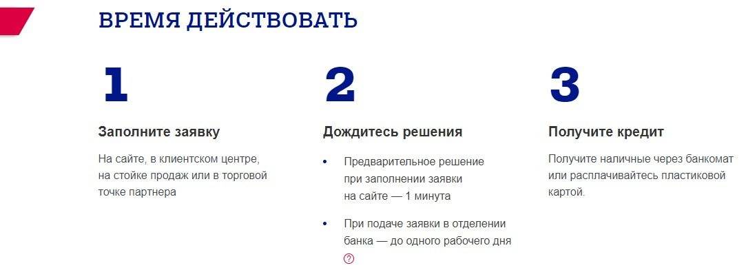 Специалист также поможет выбрать удобный для вас тарифный план. Узнать, одобренный ли ваш запрос, вы сможете не сразу. Оповещение придет на мобильный телефон, указанный при подаче заявки на кредитование.