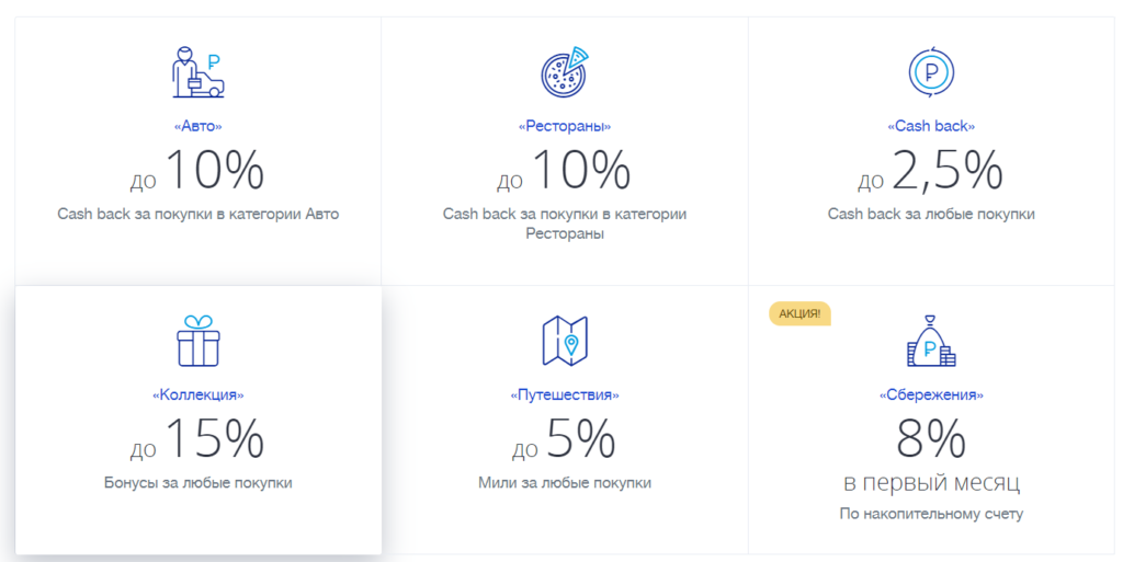 - «Коллекция» — накопленные бонусы возможно обменять на товары, представленные в каталоге «Коллекция». Их начисление производится за оплату услуг и товаров в магазинах-партнёрах. На личном бонусном счёте баллы отображаются через 21 день, после чего их можно тратить по своему усмотрению.