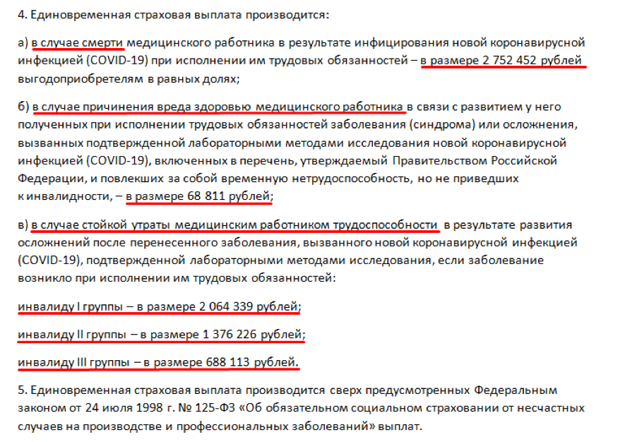Справка: размер страховой выплаты регламентирован Указом Президента от 06.05.2020 № 313. Сумма напрямую зависит от степени тяжести последствий.