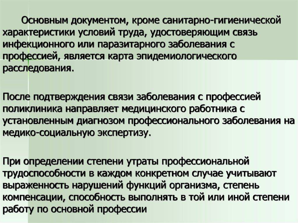 - Заключение передается в учреждение здравоохранения, где делается вывод о том, является ли заболевание профессиональным.