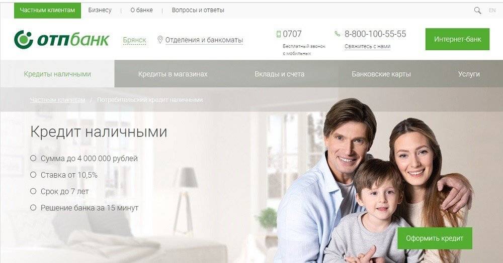 Условия кредита, выдаваемого ОТП Банком: