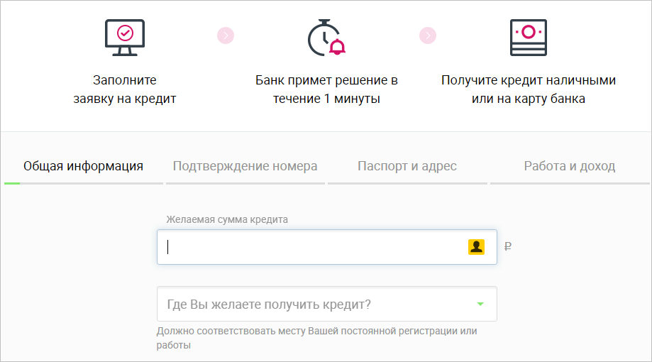 - Подать заявку в режиме онлайн на официальном сайте Ренессанс. Процесс займет 5 минут.