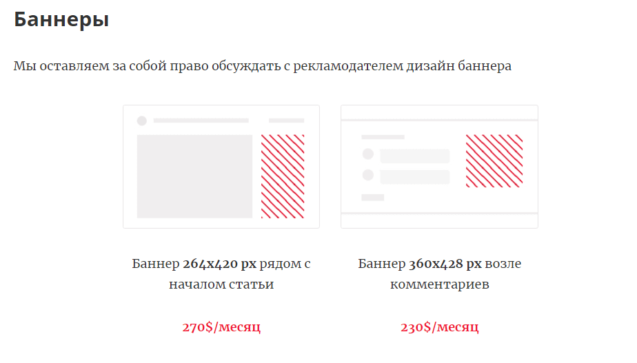 Пример предложения рекламных площадей непосредственно от площадки публикации