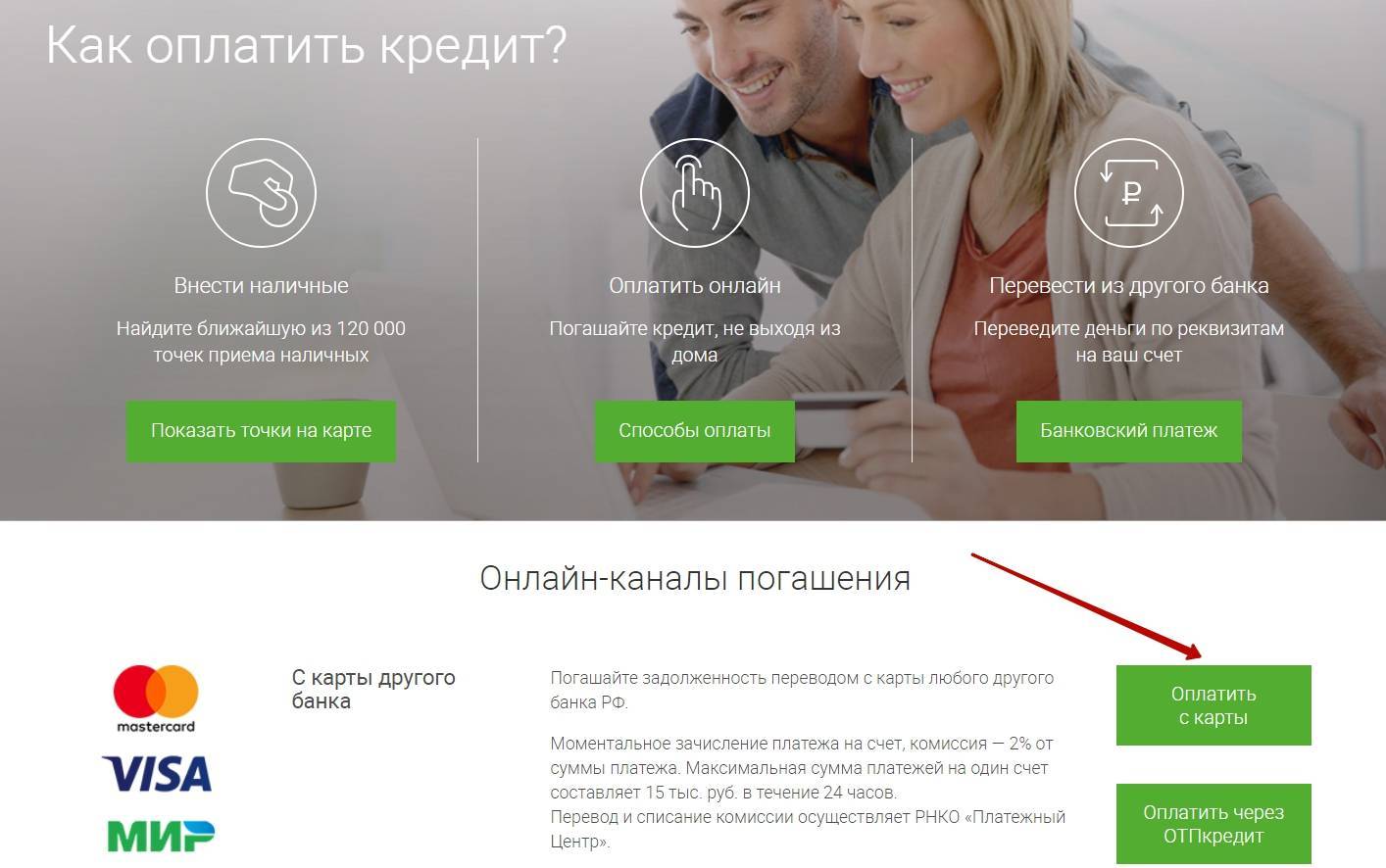 Другие способы погашения кредита в ОТП Банке