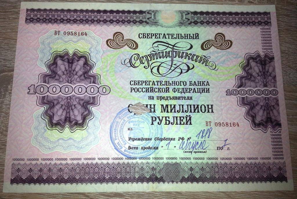 Сертификаты сберегательного банка СССР, выпущенные до 1991 года включительно, могут быть выкуплены в размере 40% от их номинальной стоимости. На сертификаты изданные позже можно получить инвестиционный доход по ставке 10% к их номинальной стоимости, откорректированной до 40%. Все эти документы выкупаются банком и после погашения держатели уже не могут рассчитывать на дополнительные выплаты.