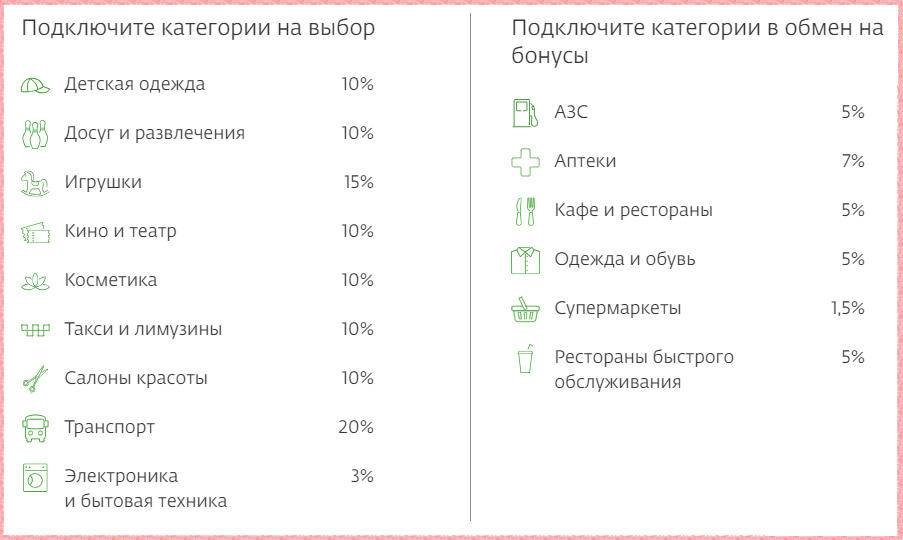 Категории покупок с повышенными бонусами