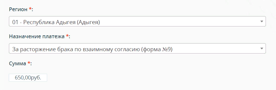Где взять квитанцию для оплаты госпошлины на развод через ЗАГС?
