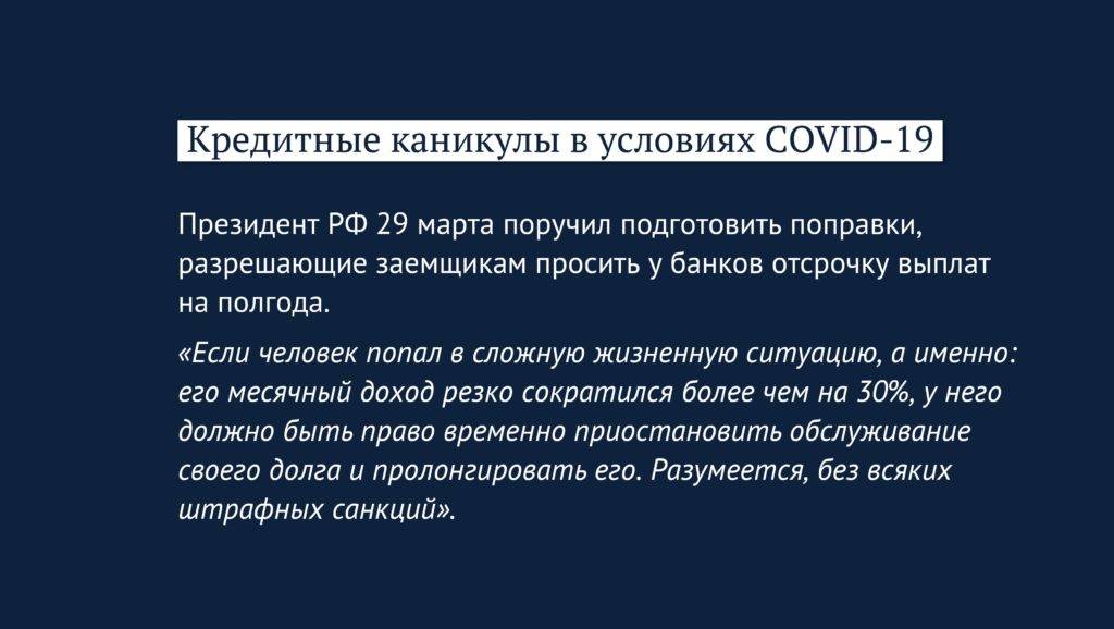 Кредитные каникулы в 2020 году