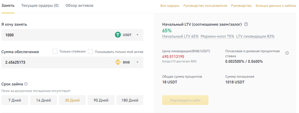 Из-за нестабильных цен криптокредиты требуют довольно большого залога — соотношение заем/залог на централизованных платформах вроде Binance Loans составляет 65%: