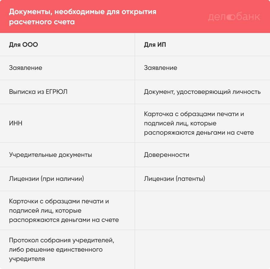 Это примерный перечень. На практике банки запрашивают разные документы, лучше заранее уточнить на сайте или у менеджера. Например, чтобы открыть счёт в Делобанке, понадобятся: