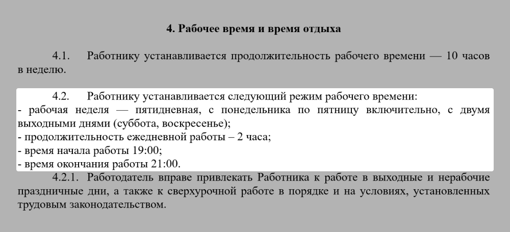 Если пекарня нанимает продавца по совместительству для работы в вечерний час пик, рабочее время в договоре может быть прописано так